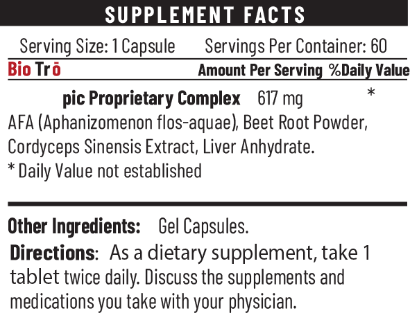 BioTropic Labs AFA Formula stands out because it combines powerhouse ingredients—Aphanizomenon flos-aquae (AFA), immune-supporting Echinacea, Argentinian grass-fed liver anhydrate for stamina and improved oxygen transport, and increased blood flow to improve strength and endurance, and repair red blood cells from beetroot extract. AFA delivers a rare spectrum of nutrients that nourish the body at a cellular level, while Echinacea helps fortify the immune system, especially under physical stress. Together, they create a formula that supports endurance, recovery, and immune defense in one clean, synergistic stack—making it an ideal choice for athletes and high-performers who want to stay energized and protected without compromise.